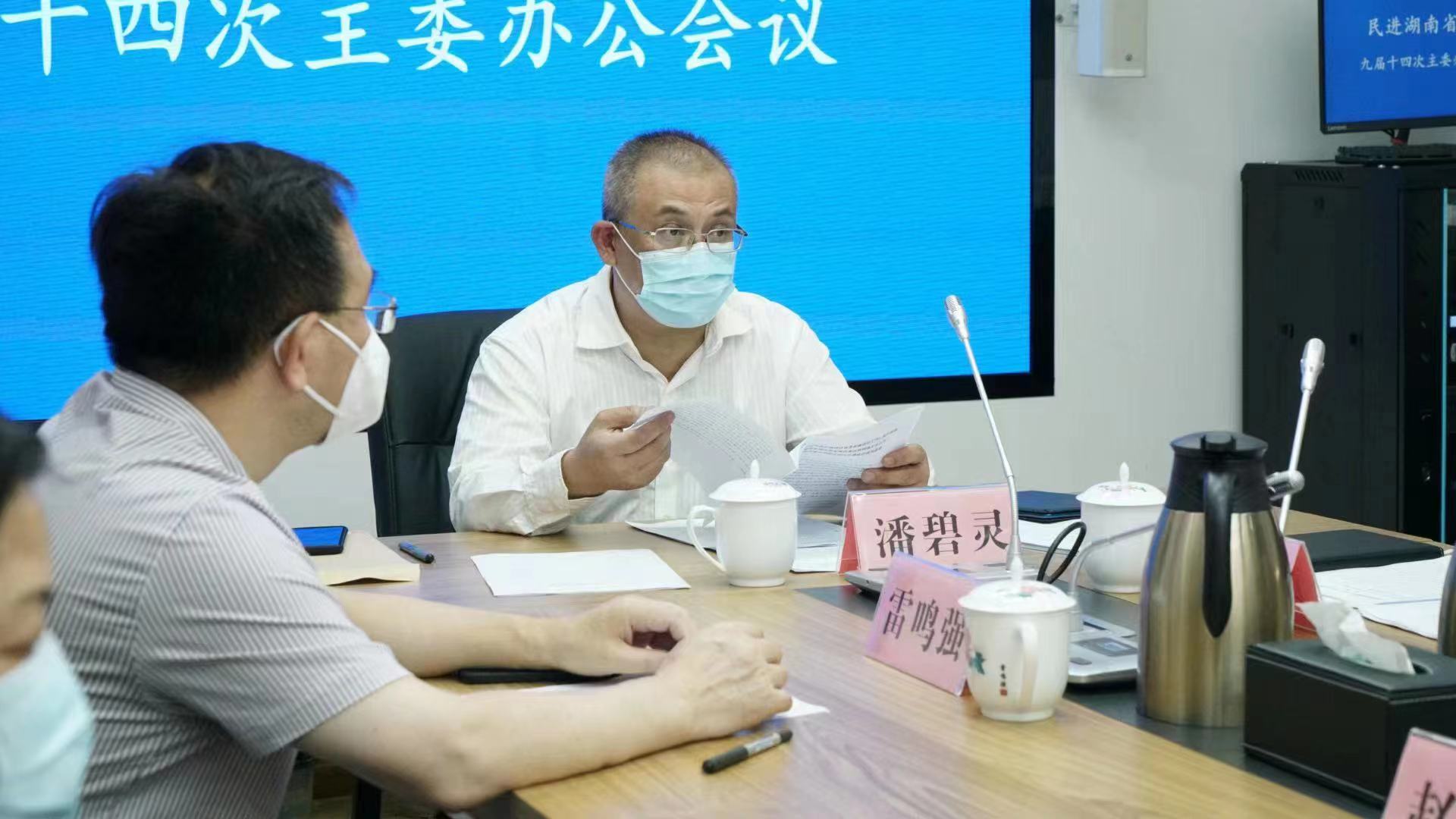 6月9日,民进湖南省委会主委办公会议在省委会机关召开。湖南省政协副主席、民进湖南省委会主委、湘潭大学校长潘碧灵,民进湖南省委会专职副主委黄铁华、副主委雷鸣强出席会议。